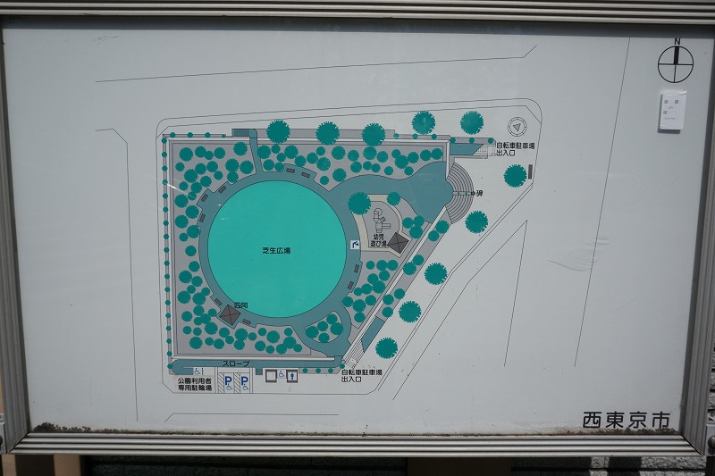 この公園は、保谷市下保谷の、高橋敬一・富美御兄弟のご厚意により、保谷氏に平成11年3月24日に寄贈されたもので、そのご厚意に報い、この場所に一体化した自転車駐輪場および緑化公園を造成いたしました。