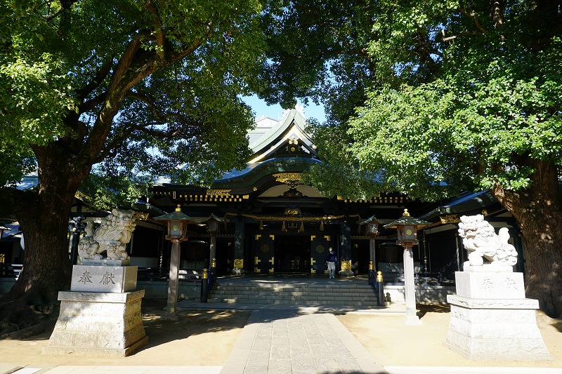 慶安元年(1648)社殿再興の折りに幕府から氏子として牛込郷三十六ヶ町が定められ、翌年の慶安二年(一六四九)社殿を始め数々の殿舎が竣工し、八千八百余坪の境内地に壮麗な建物が櫛比して将軍家祈願所としての規模も整い、以後江戸屈指の大社として重んぜられました。その後も幕府により数次にわたって造営・営繕が行われましたが、特に元禄十六年(1703)の造営は、江戸権現造り社殿として壮麗を極めました。