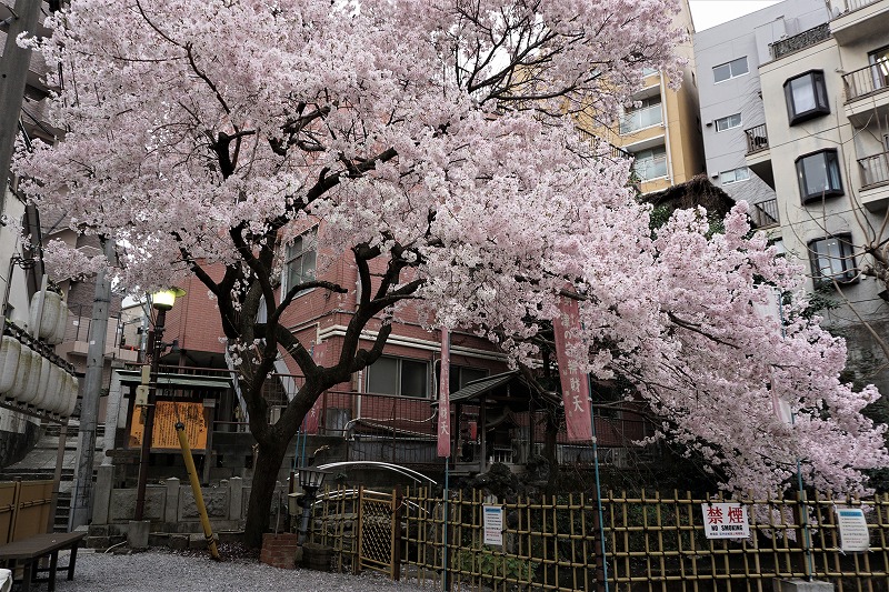 新宿で一日券を買う前に丸の内線四谷三丁目駅近くにある「津の守弁財天」の高遠桜を見る。