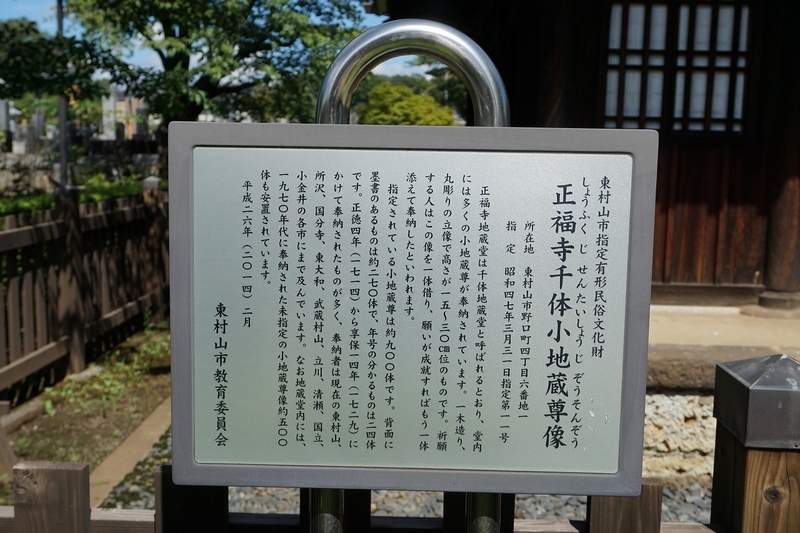 この正福寺千体地蔵堂は、都内唯一の国宝建造物です。地蔵堂本尊及び小地蔵尊像は、市指定文化財となっています。