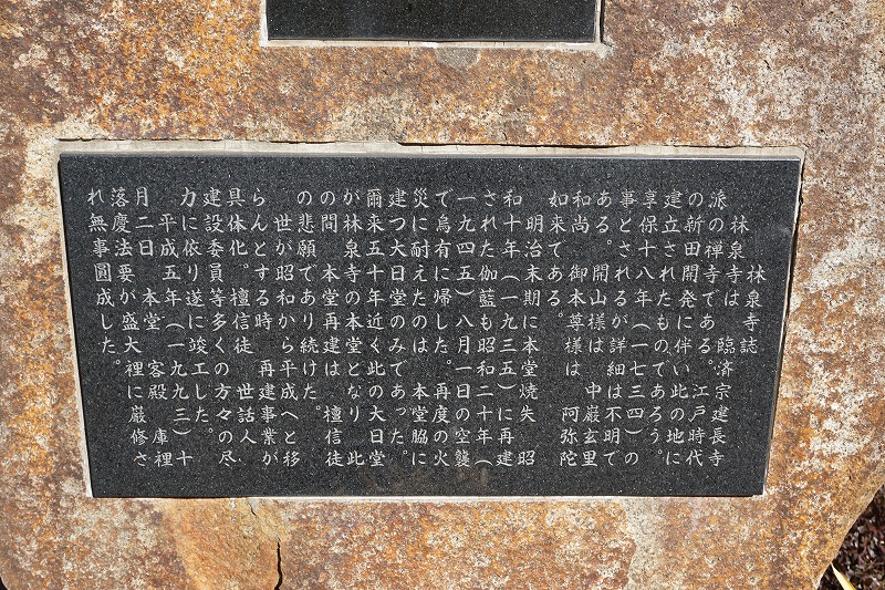 明治末期に本堂消失 昭和十年(1935)に再建された伽藍も昭和二十年(1945)八月一日の空襲で烏有に帰した。再度の火災に耐えたのは 本堂脇に建つ大日堂のみであった。爾来五十年近く此の大日堂が林泉寺の本堂となり 此の間 本堂再建は 檀信徒の悲願であり続けた。