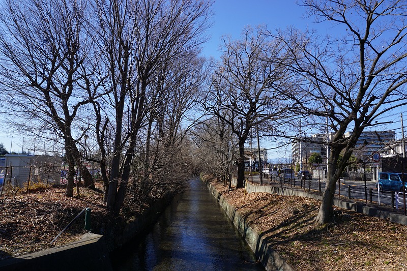 砂川用水は、明暦三年(1657)幕府財政再建の一環として武蔵野新田開発のため玉川上水から分水され、松中橋から上水と平行に東上し、天王橋から五日市街道に沿って開通された。
