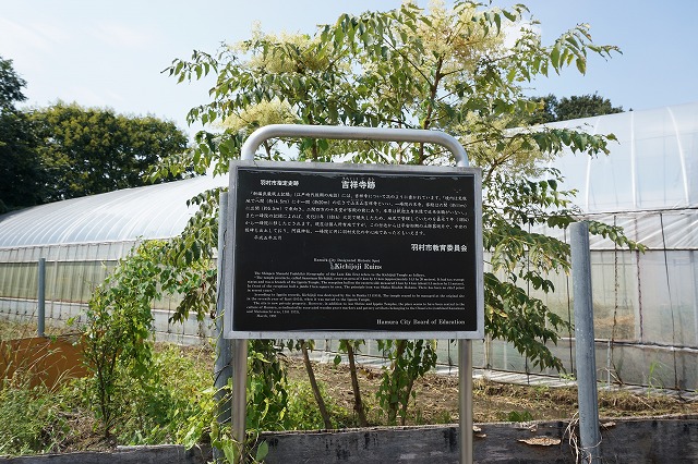 『新編武蔵風土記稿』 (江戸時代後期の地誌) には、 吉祥寺について次のように書かれています。 「境内は免税地で八間(約14.5m) に十一間 (約20m) の広さで山王山吉祥寺といい、 一峰院の末寺。 客殿は六間 (約11m)に三間(約5.5m) で東向き。 二間四方の十王堂が客殿の前にあり、 本尊は釈迦立身木像で近来住職がいない。」また一峰院の記録によれば、文化11年(1814) 火災で焼失したため、地元で管理していたのを嘉永7年(1854)から一峰院に移したとされます。 現在は個人所有地ですが、 この付近からは平安初期の土師器破片や、 中世の板碑も出土しており、 阿蘇神社、 一峰院と共に羽村文化の中心地であったともいえます。